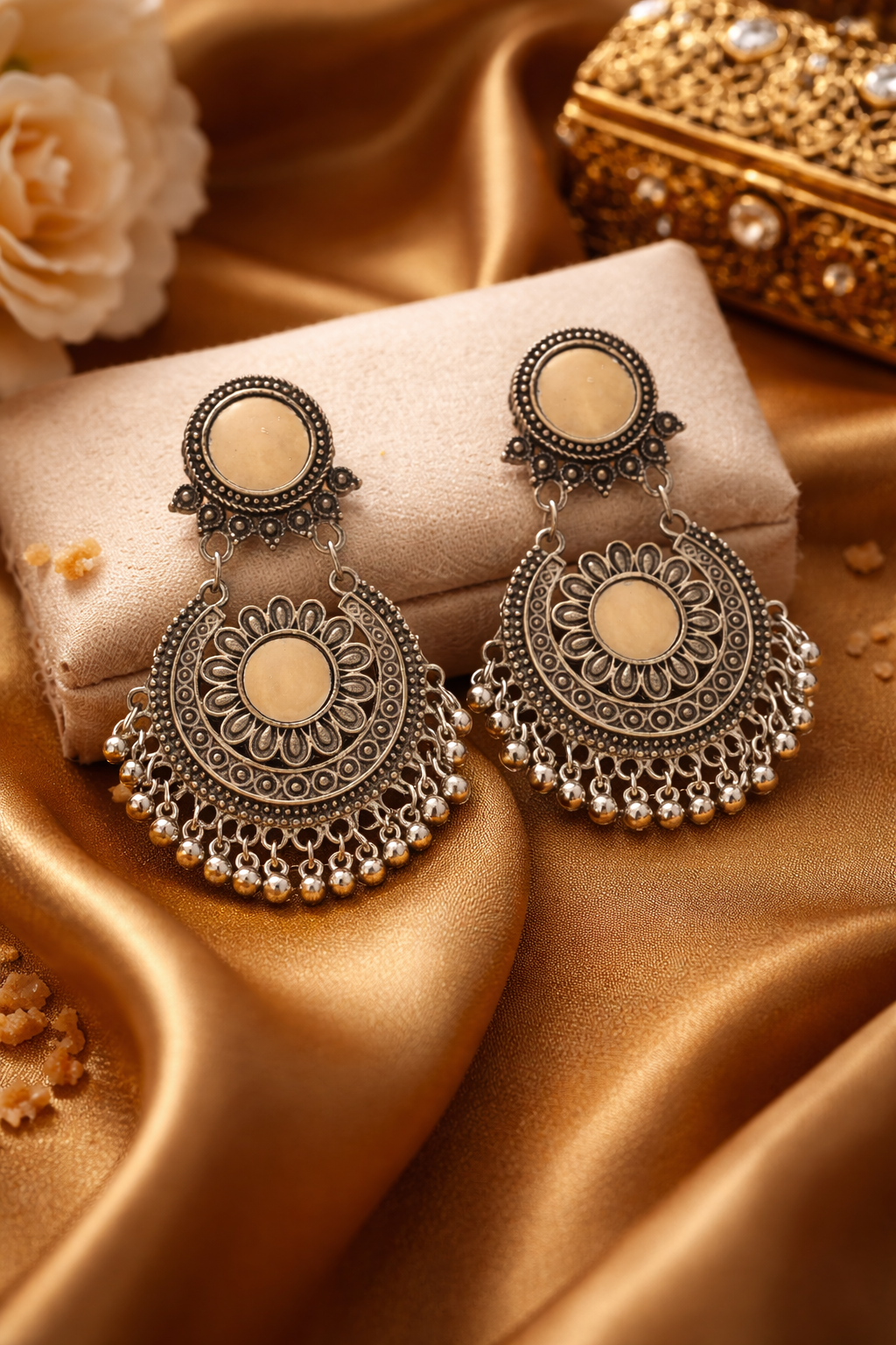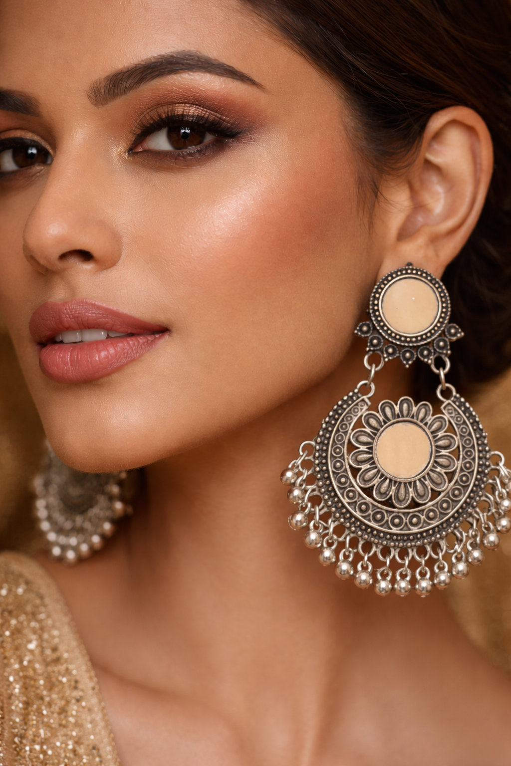 The antique oxidized finish enhances the vintage aesthetic, making them perfect for festive celebrations, weddings, cultural events, and everyday ethnic styling. Pair them with sarees, kurtas, lehengas, or Indo-western outfits for a bold yet graceful look.